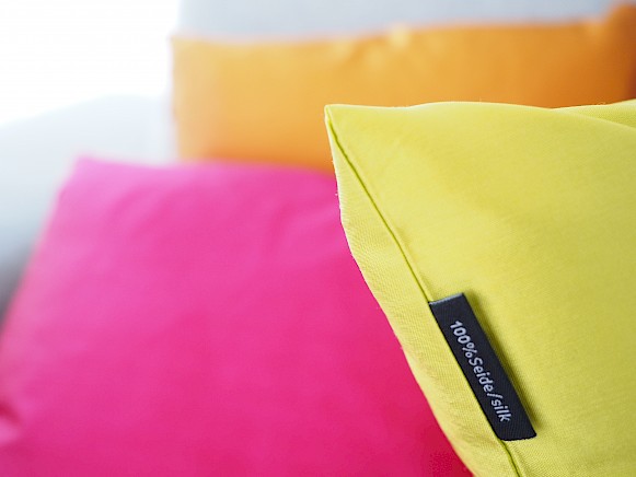 Ein Meer von Farben findest du derzeit in unseren Shops, denn unsere Seidenkissen aus den besten Seidenwebereien in Indien sind eingetroffen. Wusstest du schon? Seide wird aus dem Kokon der Seidenraupe gewonnen und ist eine textile Endlos-Faser, die hauptsächlich aus Protein besteht. Zu den besonderen Eigenschaften der Seide zählen der schöne Schimmer und Glanz, sowie die gute Isolierfähigkeit im Winter und der kühlende Effekt im Sommer.